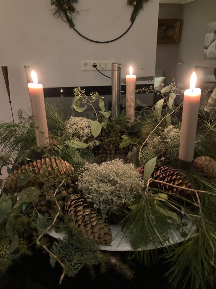 We gaan weer een mooie krans voor deze tijd van het jaar maken met natuurlijke materialen, dus ruime tijd houdbaar... met ook een aantal kaarsen er op.